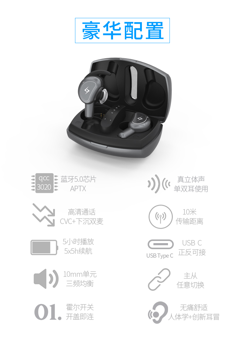 1、高通QCC3020芯片,支持APTX,相對更音質好延遲低(更合適游戲吃雞等);