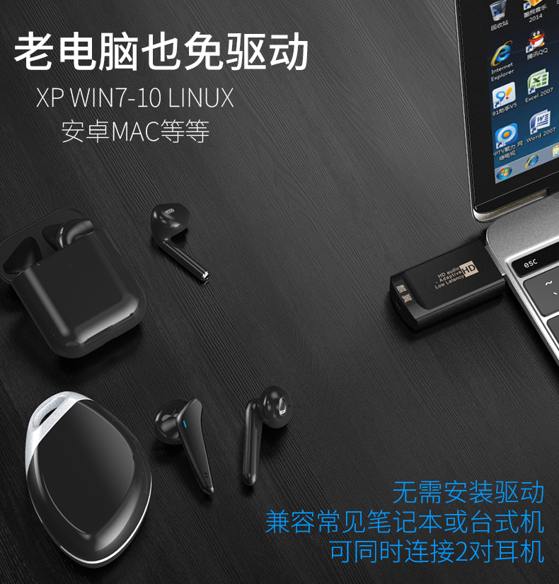1、采用高通QCC系列5.2藍牙芯片,可同時連接2個藍牙耳機或音箱。只傳輸音頻