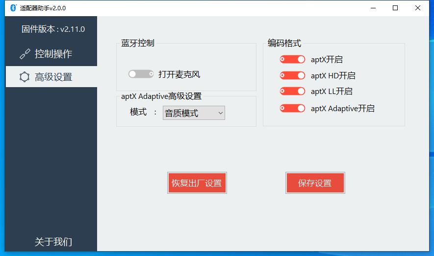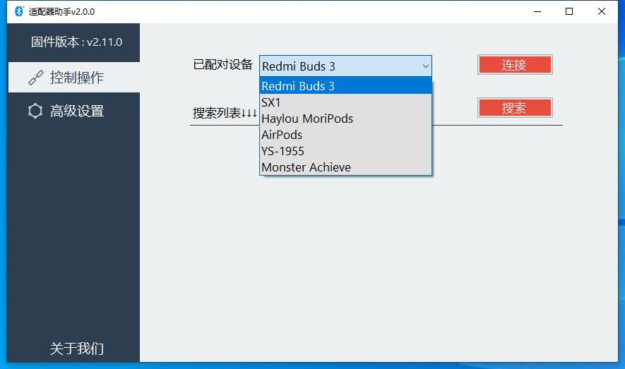 更新功能:全新設計UI,新增加搜索列表,針對于客戶在電腦上使用更方便。保留APTX相關編碼設置功能。