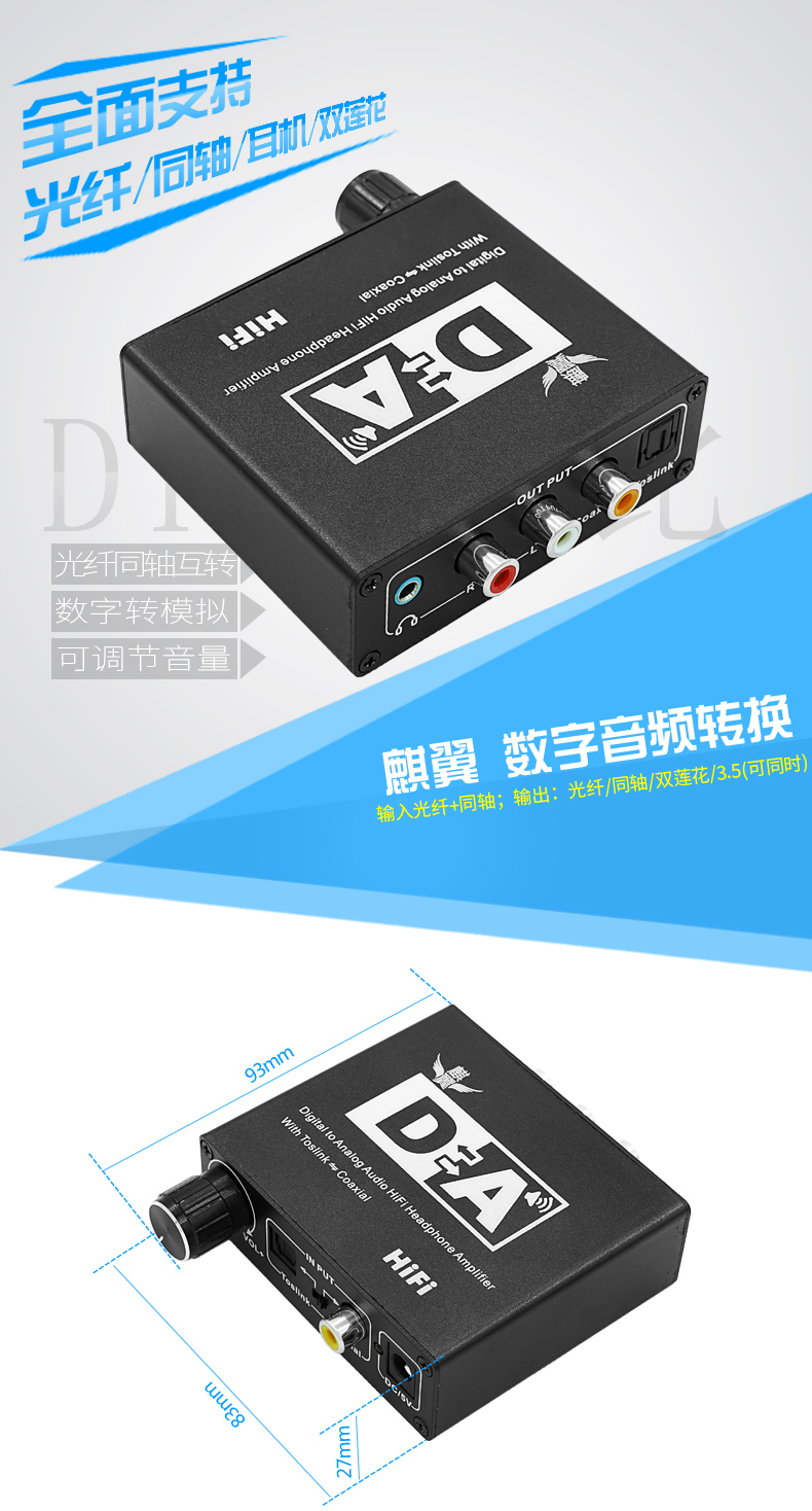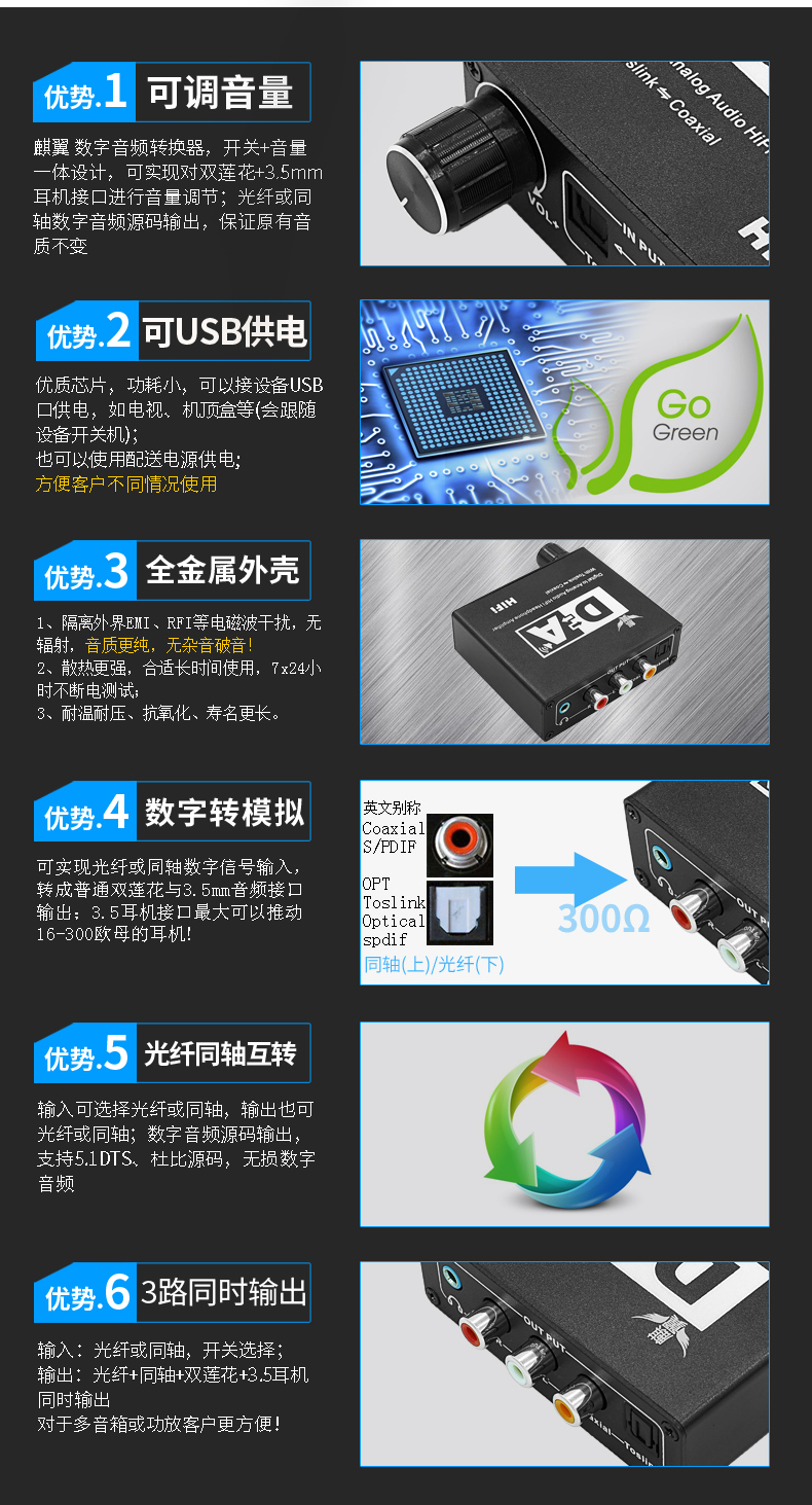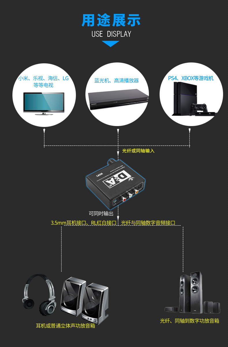 2、支持光纖同軸轉成RL和3.5mm輸出;