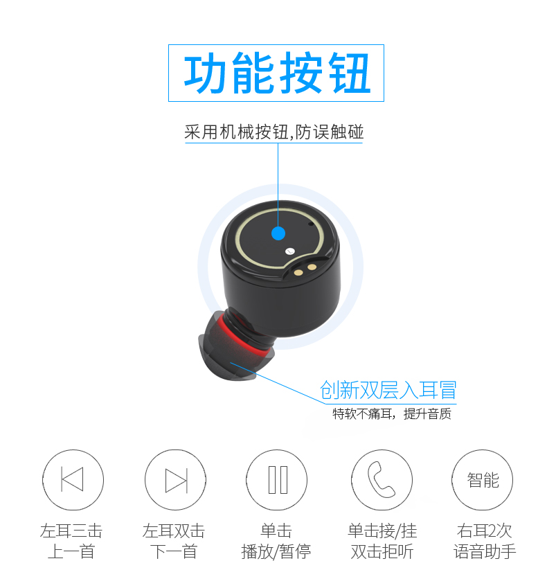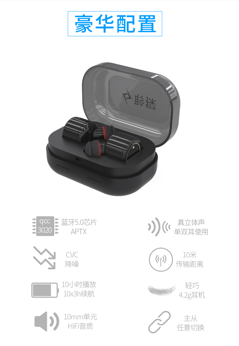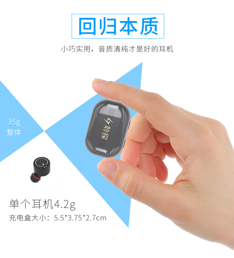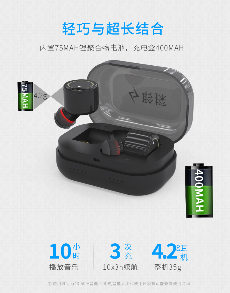 3、單耳機4.2g; 整體35g; 小巧,充電盒可充3次電;